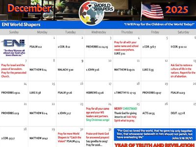 World Shaper Gaella Imanaturikumwe from Rwanda - daughter of WS Ambassador Victor and wife Chantal - and her classmates gave us this wonderful April calendar. They prayed for weeks and met two weekends in a row to determine the prayer points and meaningful Bible verses.